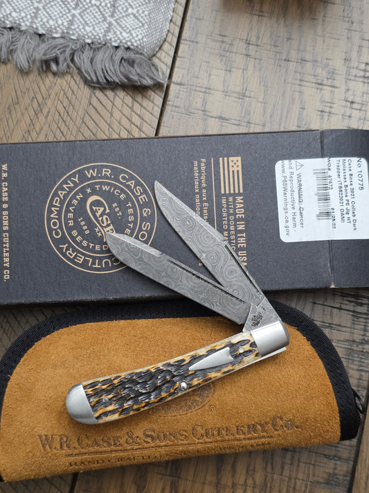 2021 Case XX Tony Bose Hunter Trapper - Dmasacus Blades Brown Jigged Bone Handles - 10775