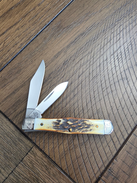 Case Bros. Cutlery Burnt Stag Swell Center Jack Scrolled #223 2 Blade