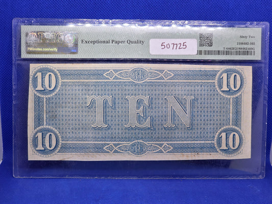 1864 $10 CSA Confederate Note 62 EPQ Uncirculated