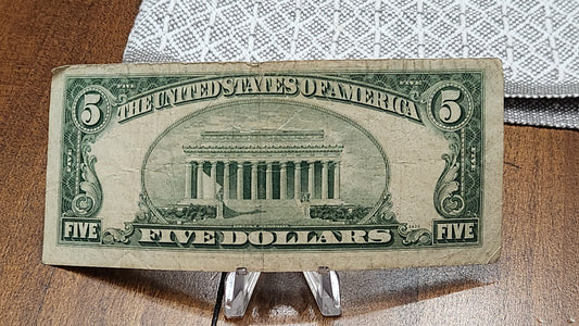 1934 B $5 Dollar Blue Seal Silver Certificate