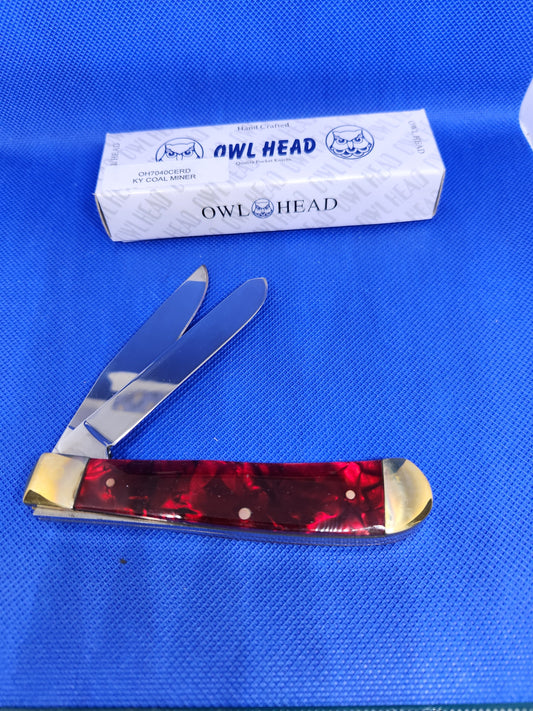 Owl Head 4.25" 2 Blade Trapper Red Pearloid Handles KENTUCKY COAL MINER OH7040CERD