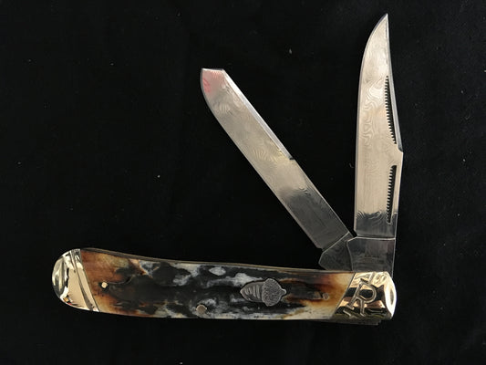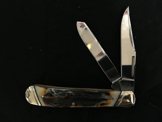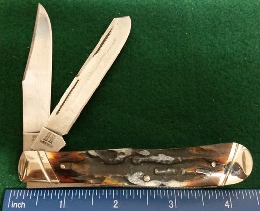 Rough Ryder RR2155 Trapper Knife, Damascus, Cinnamon Bone Stag Handles