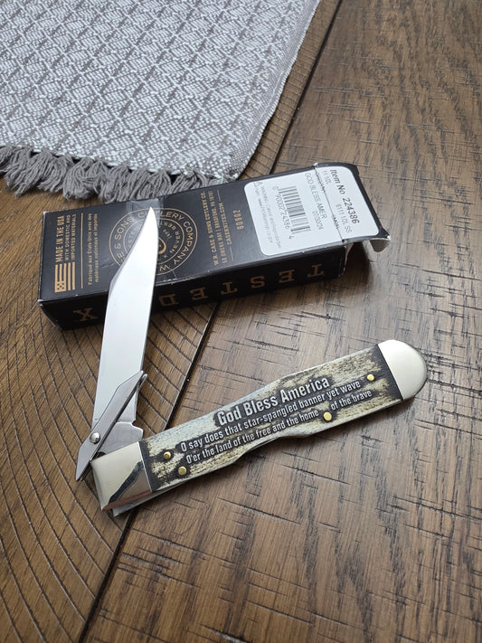 2024 Case XX Cheetah God Bless America Smooth Natural Bone Handles