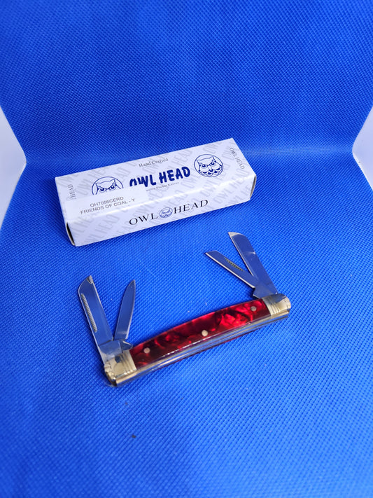 Owl Head 3.5" 4 Blade Congress Red Pearloid Handles Friends of Coal OH7056CERD-Y
