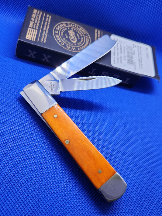 2024 Case XX Smooth Persimmon Orange Bone Razor Pocket Knife 12551 SFO 62005RAZ