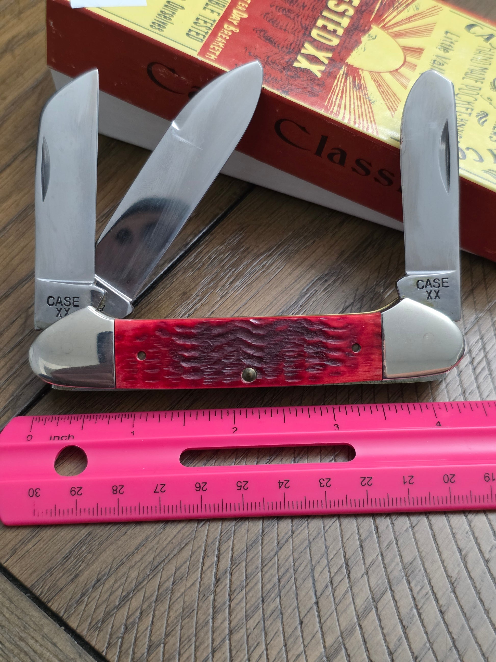 1991 Case XX Classic 6394 Gun Boat Canoe 3 Blade Red Jig Bone Handle