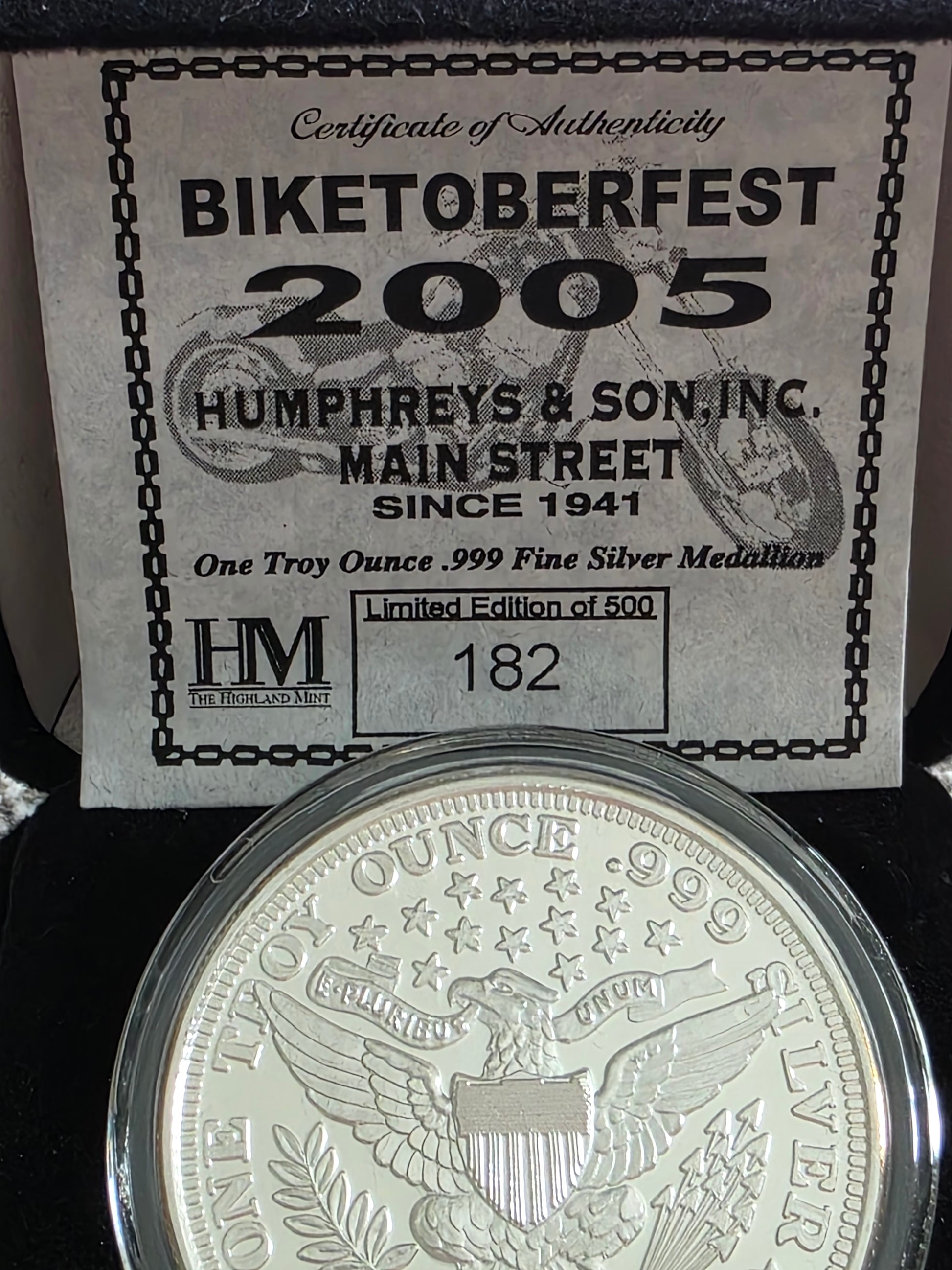 2005 Biketoberfest Humphreys & Son 1oz silver medallion 1 of 500