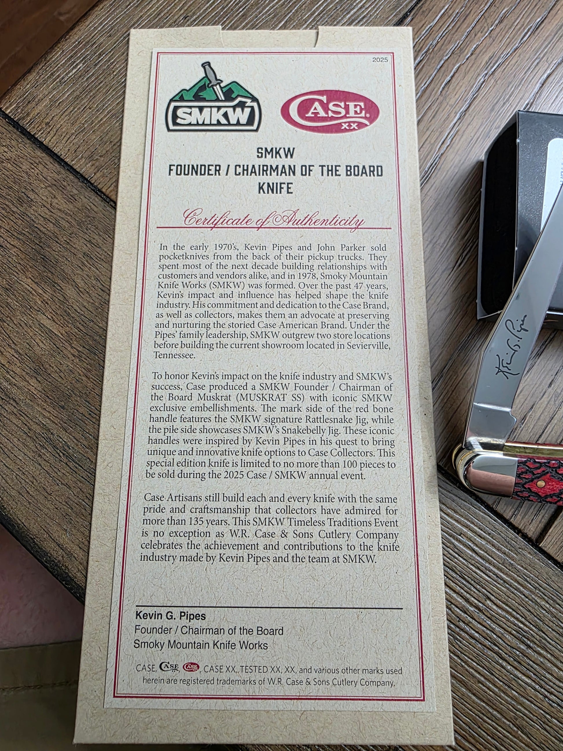 2025 Case XX Red Rattlesnake Muskrat - SMKW Founder/Chairman Knife 1 of 100