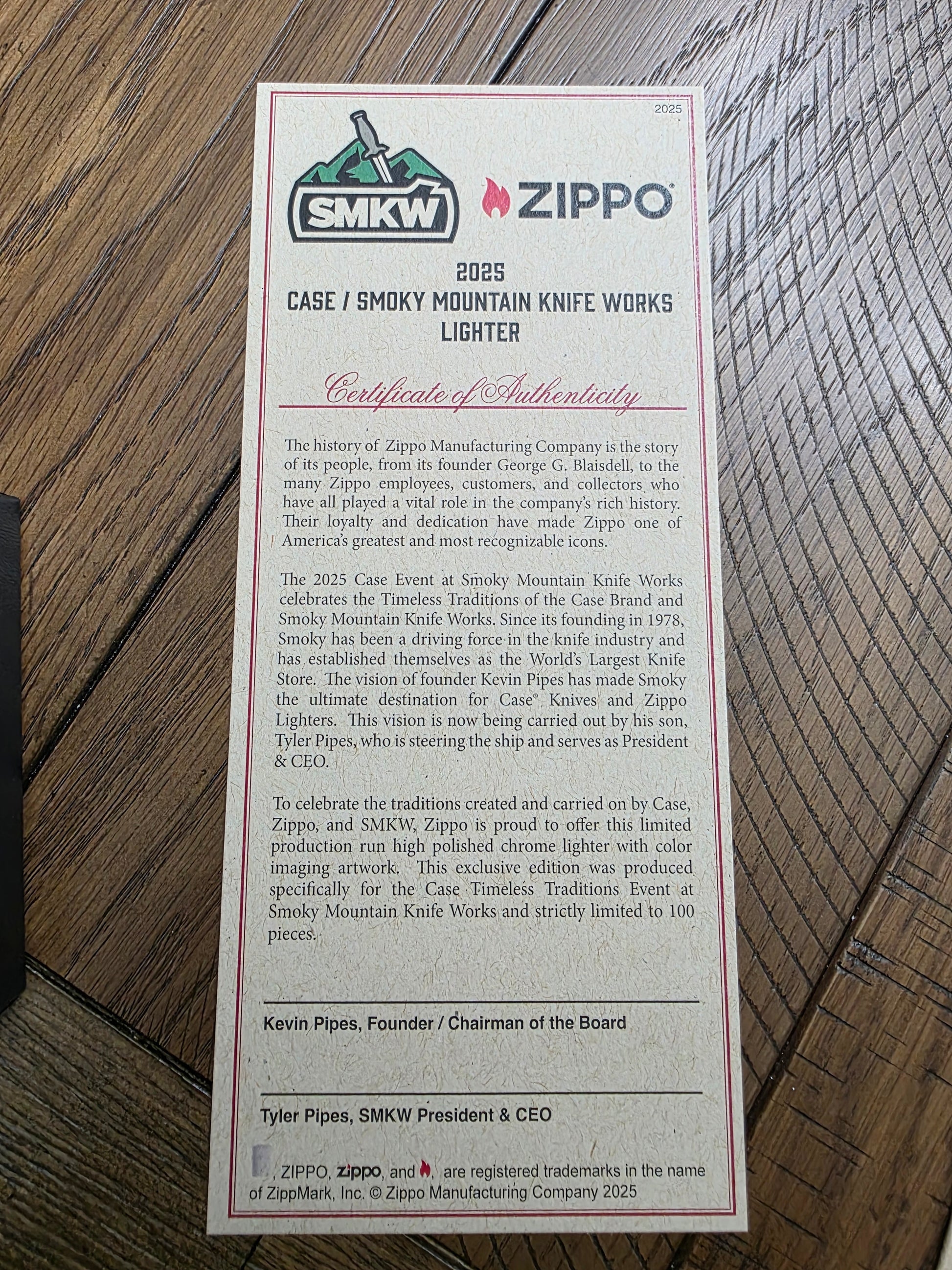 This is the Zippo made for the SMKW event for 2025. I comes with a COA and is 1 of 100.