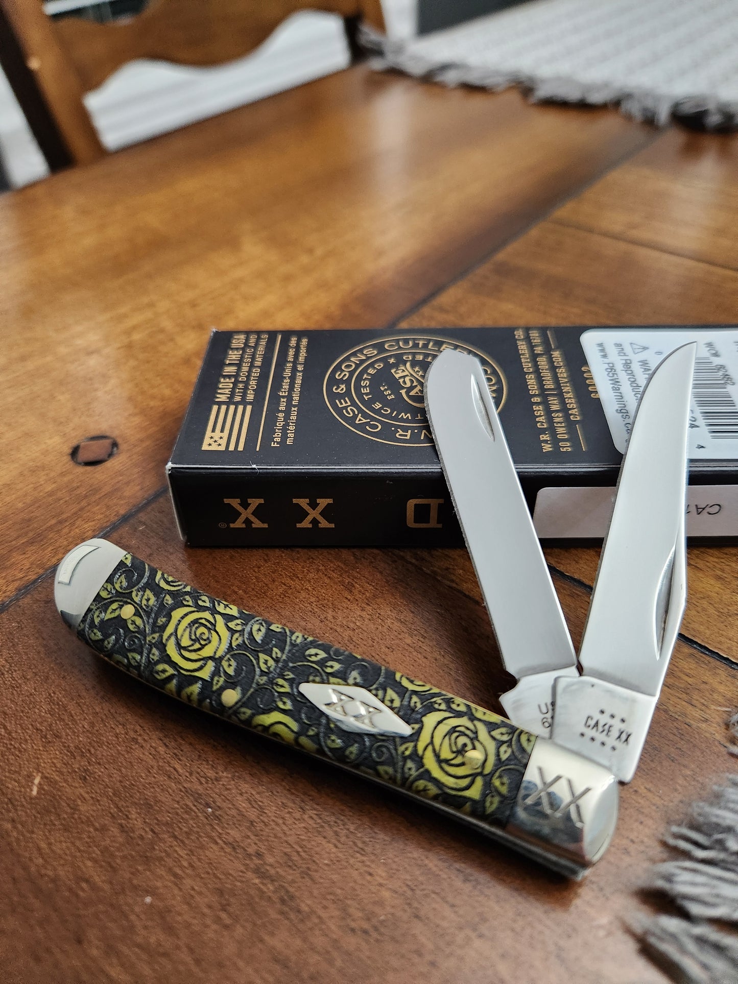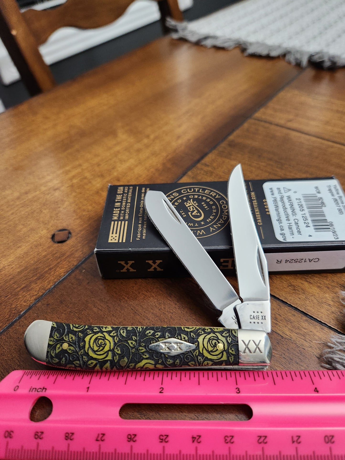 The Case XX 6207 Yellow Bone Mini Trapper is a unique and limited edition knife, featuring rose embellished handles and a compact 3.5" size. With a Case XX lifetime warranty, this knife is not only beautiful but also durable and reliable. A must-have for any collector or outdoorsman.