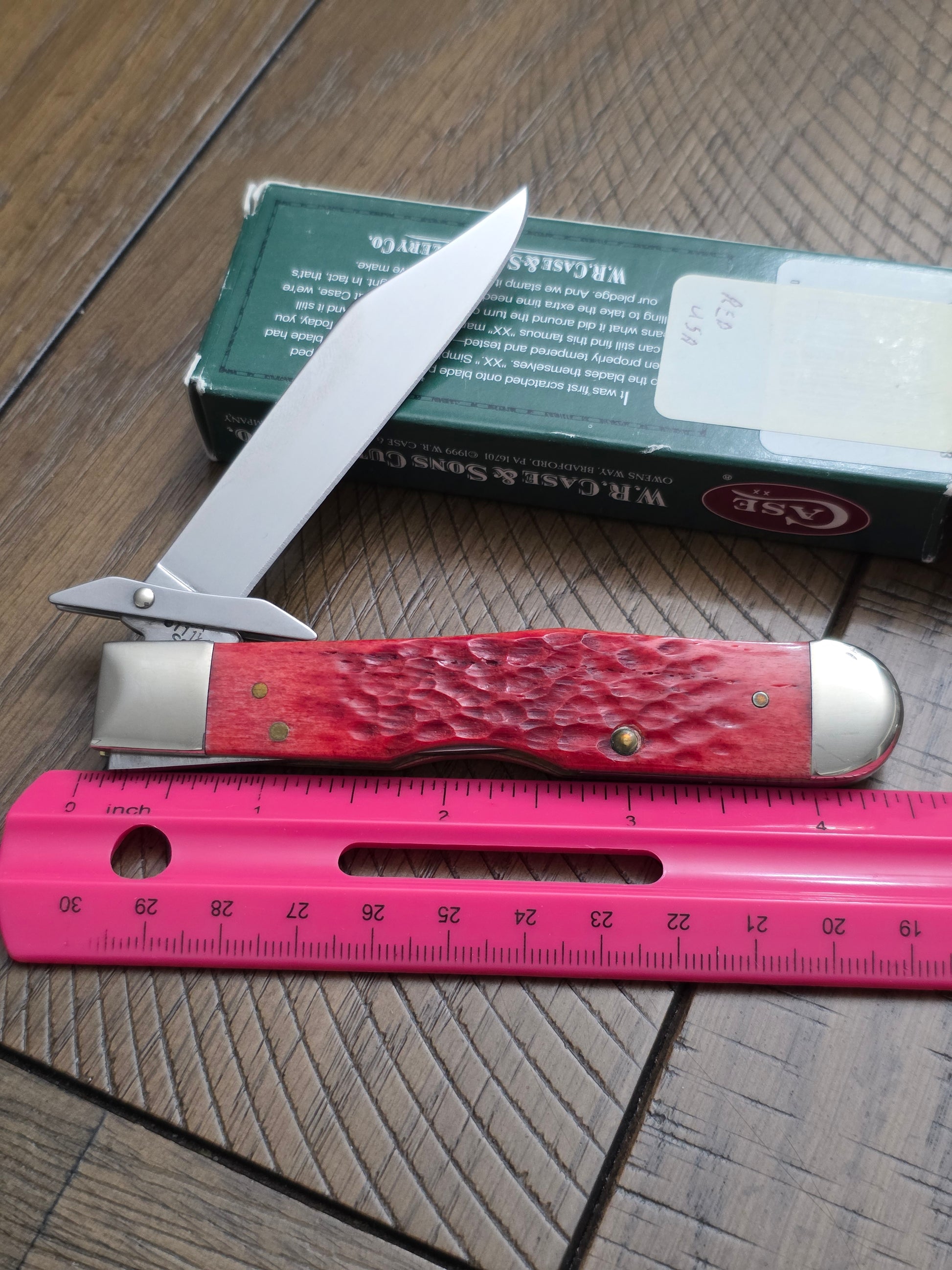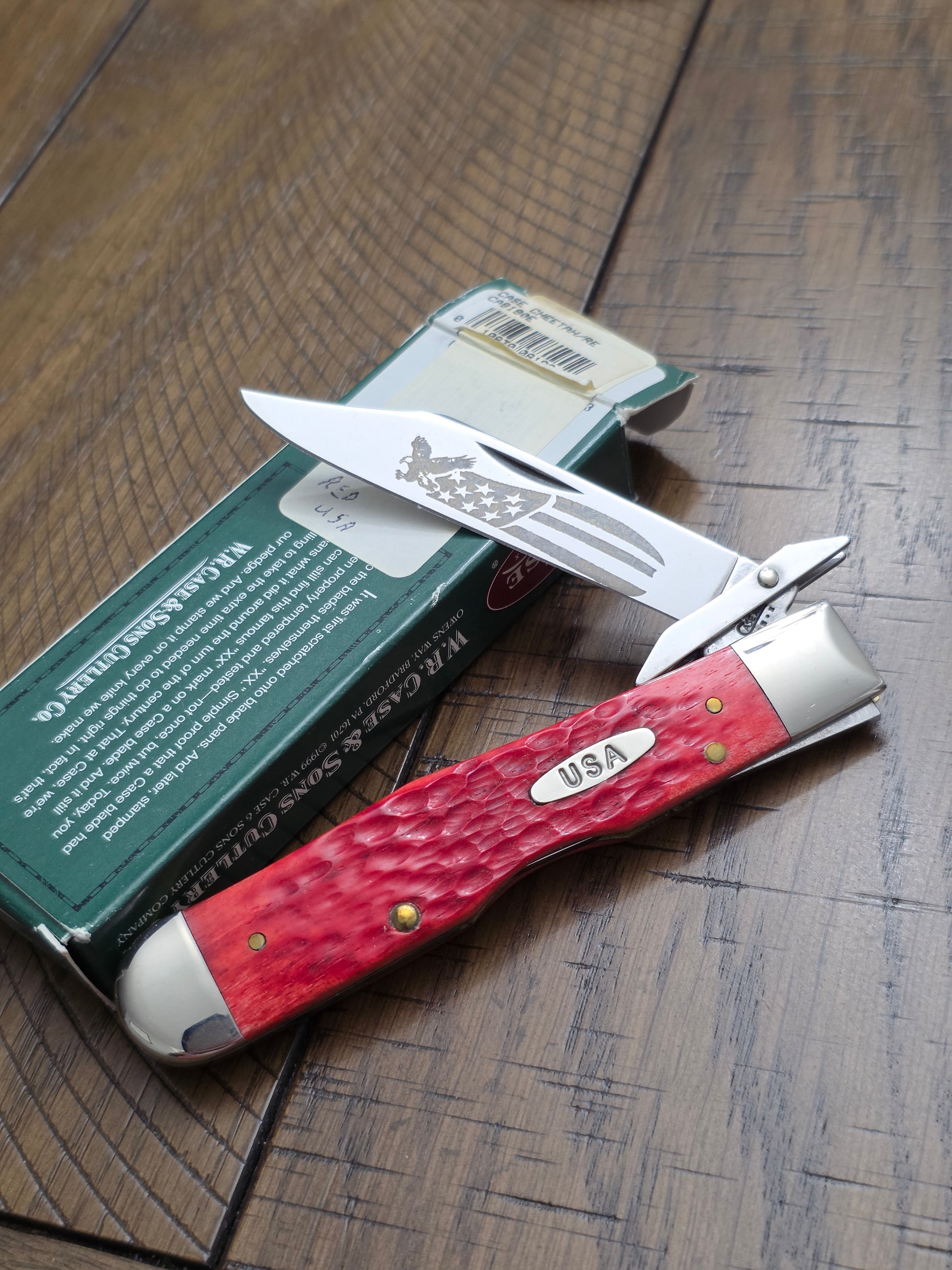 2002 Case XX Jig Red Bone USA Etch Cheetah - 08190E