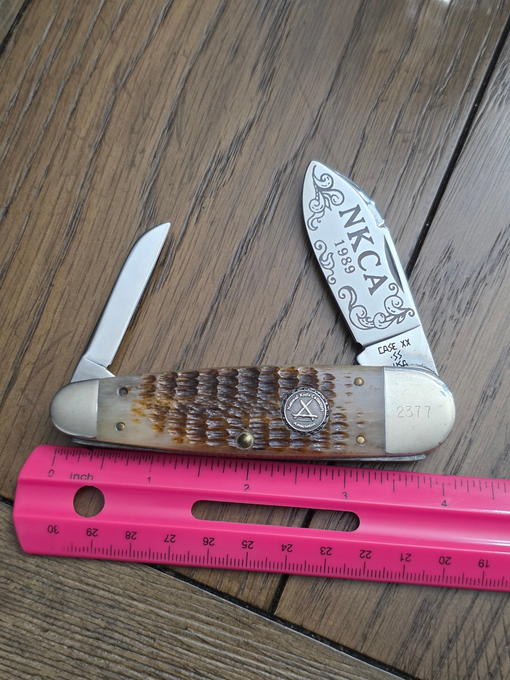 1989 Case XX NKCA Sleeve Board Whittler Rogers Jigged Brown Bone Handle