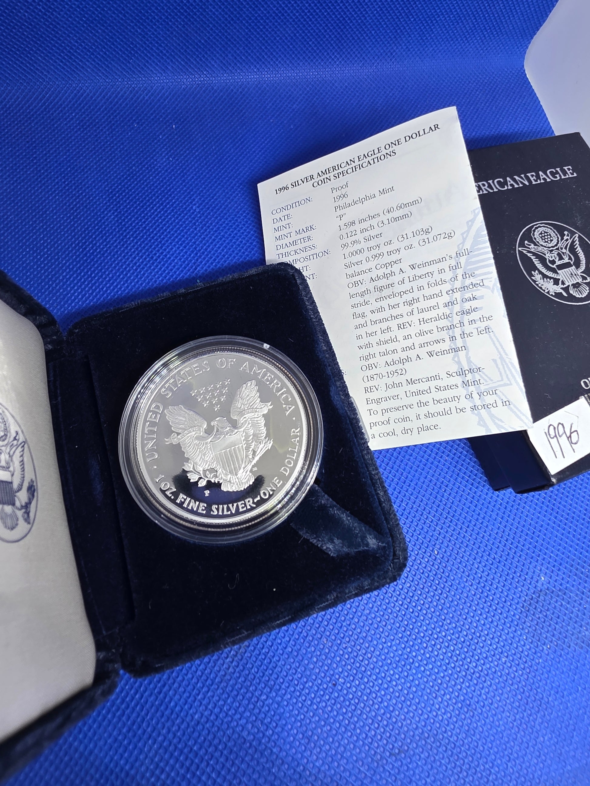 1996 SAE Proof Silver American Eagle $1 New in Box