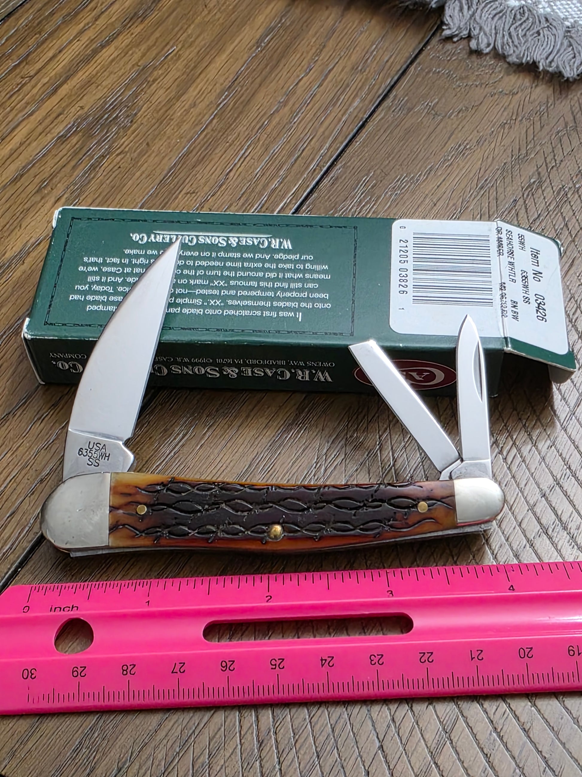 2002 Case XX 6355WH Seahorse Whittler Barbed Wire Dark Amber Bone SMKW Exclusive 03426