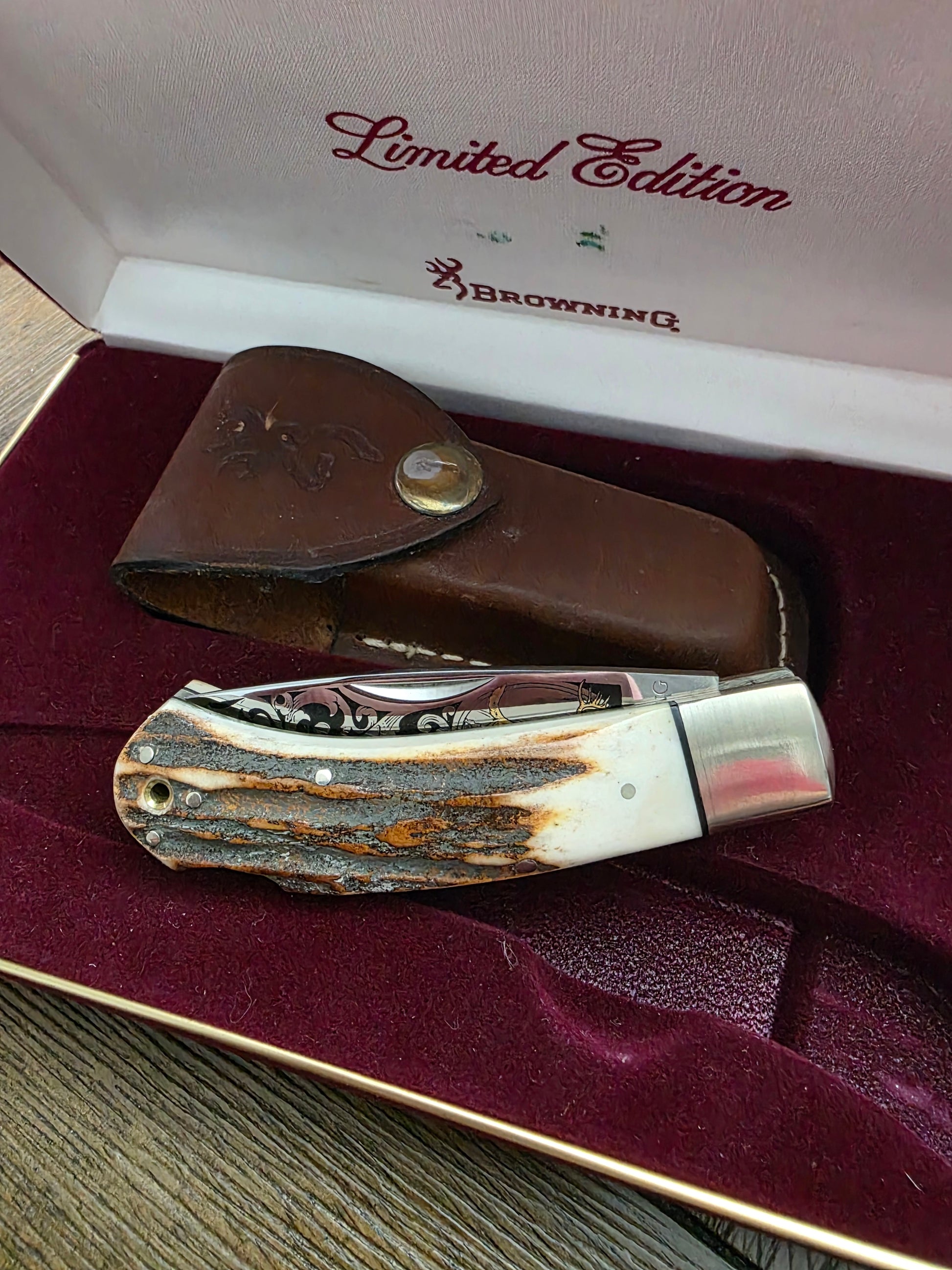 Browning Stag Lockback Knife with Sheath in Display