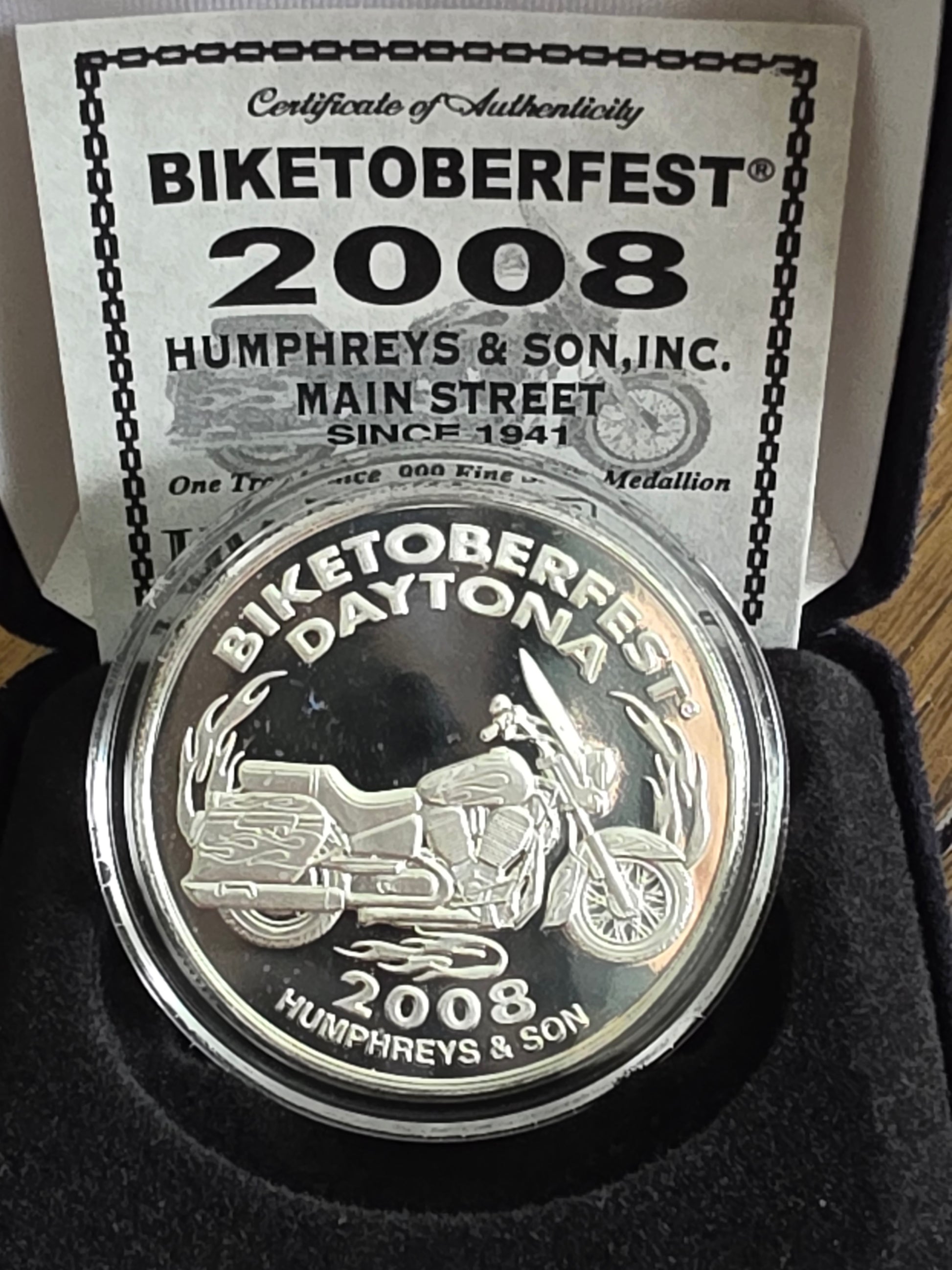 2008 Biketoberfest Humphreys & Son 1oz silver medallion 1 of 500