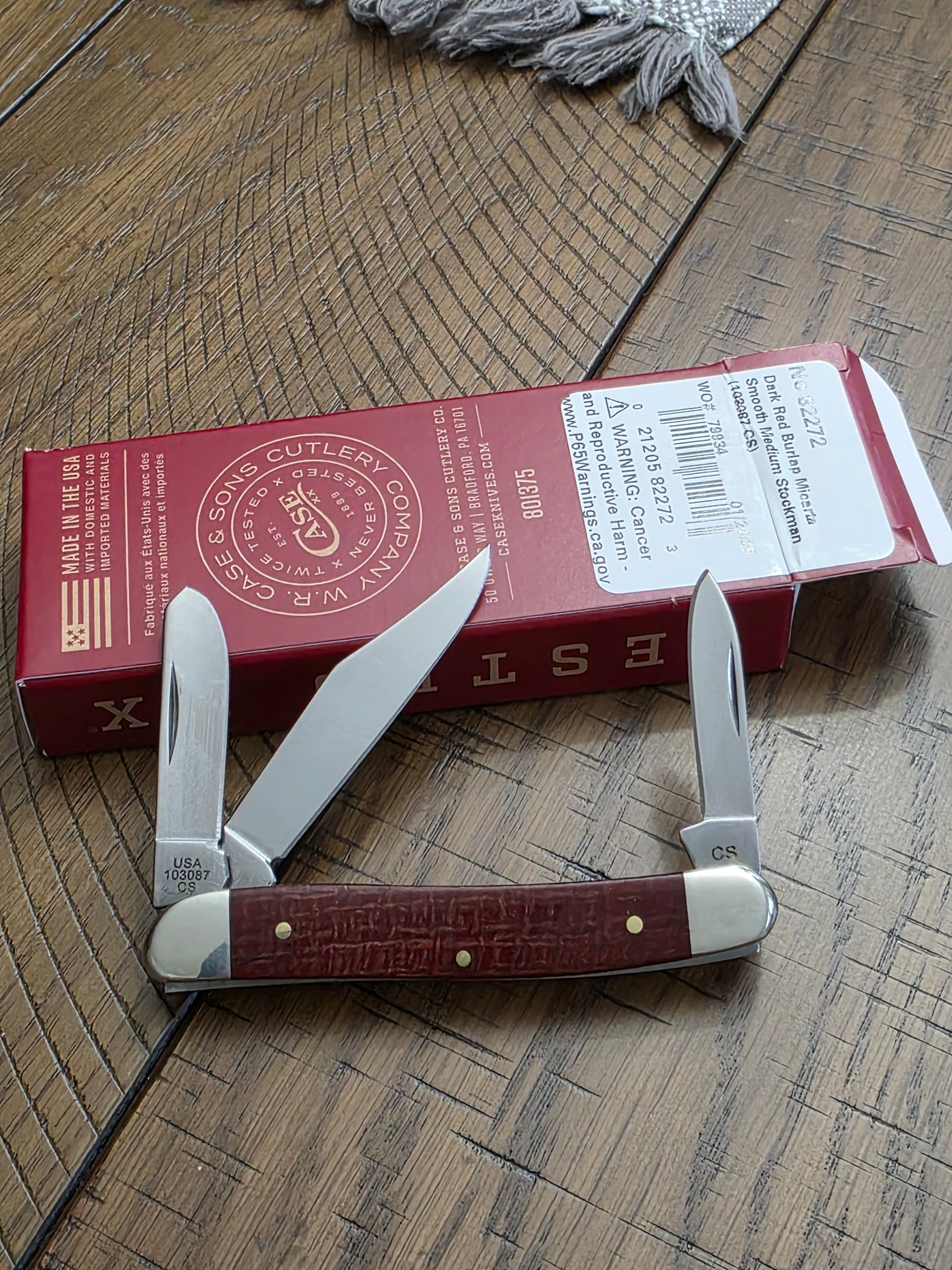 2025 Case XX Medium Stockman 87 pattern Dark Red Burlap Micarta First Production Run 1 of 250 82272