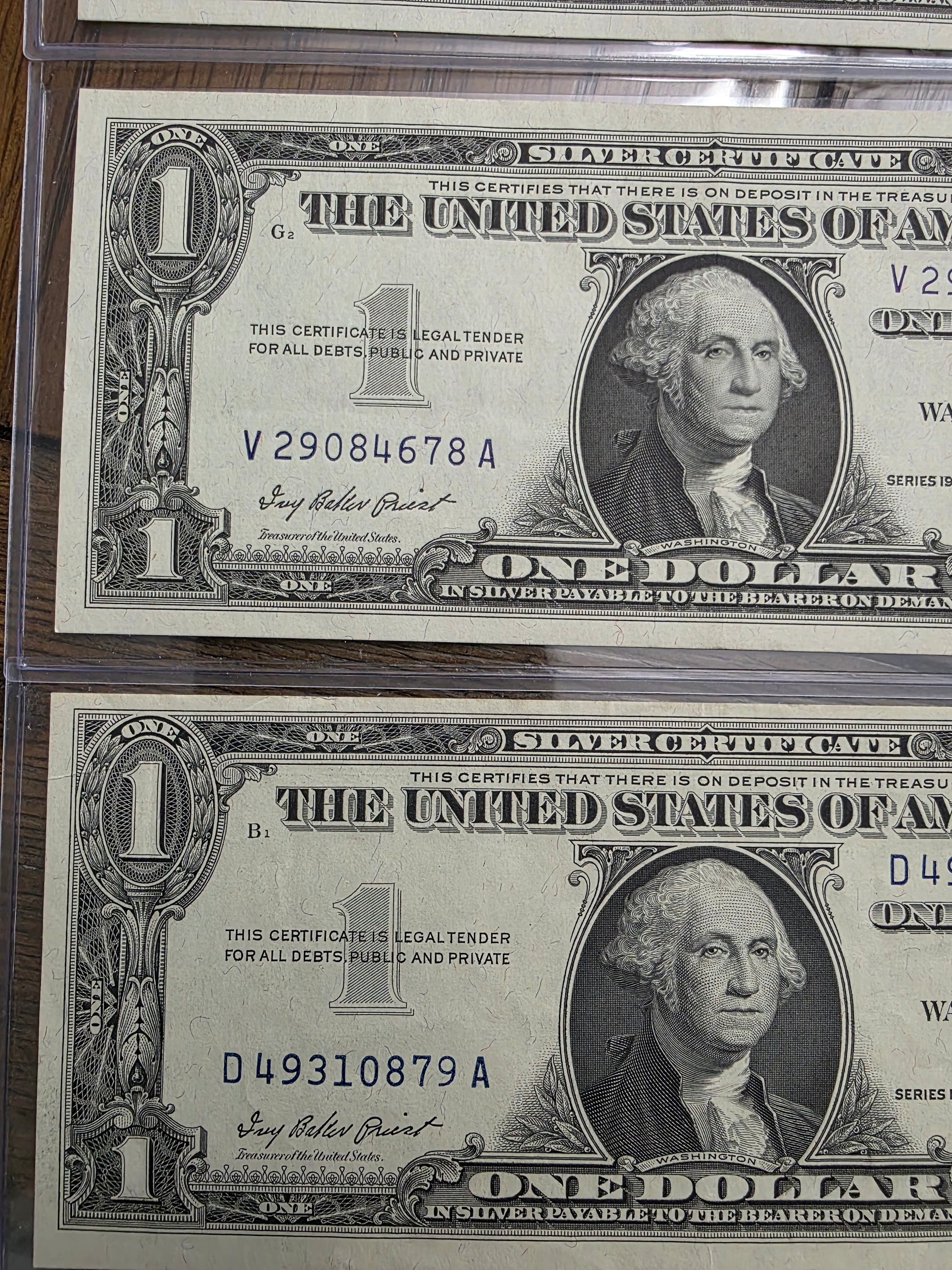 4 Consecutive $1 Dollar Blue Seal Silver Certificate 1957 Uncirculated Condition