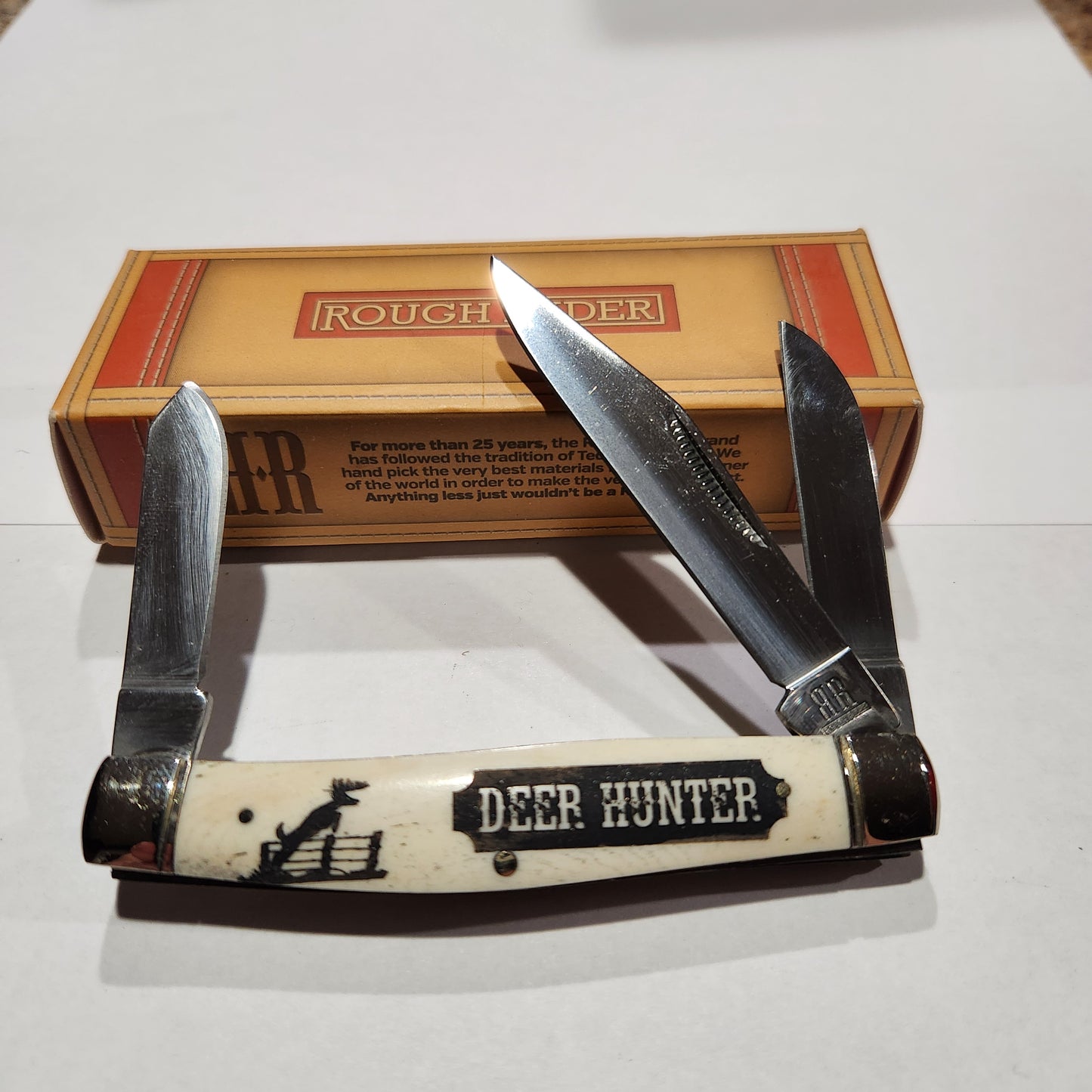 Rough Ryder Medium Stockman RR211 Smooth White Bone Deer Hunter w/fence