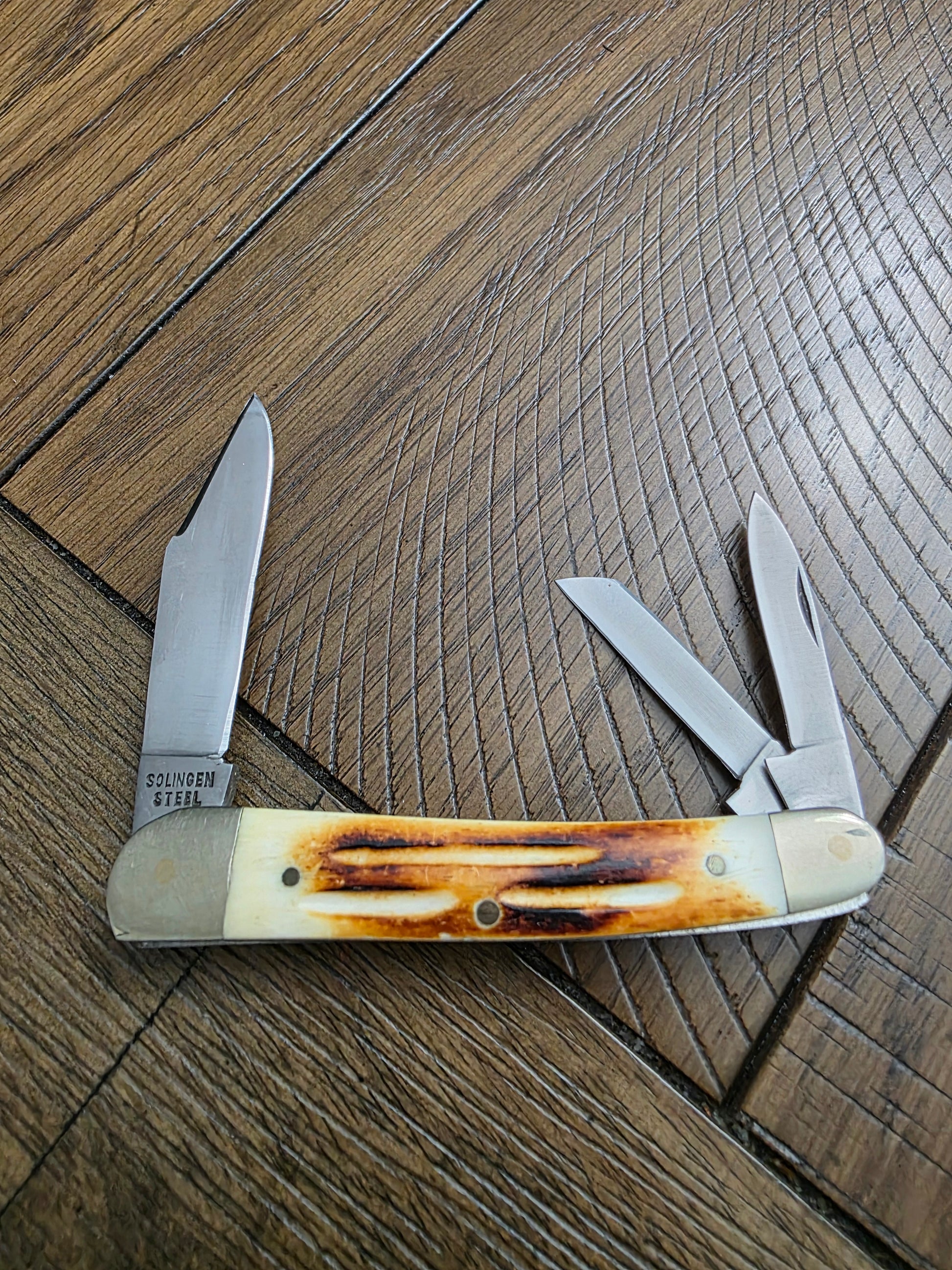 Frost Cutlery - Medium Whittler Burnt Bonestag Handles 3 Blade - Vintage